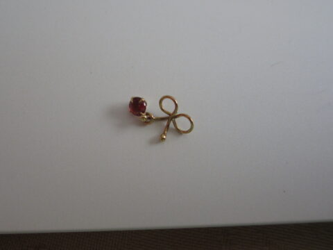 スタッドピアスです。そして片側についている石は揺れるんです。だからいかにリボンが小さいのがお分かりになるかと。耳たぶから...