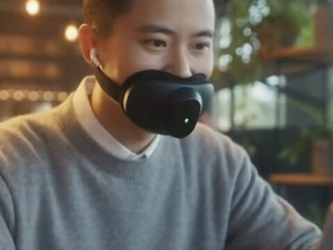 口につけるだけで、自分の声は通話相手のみに届き、周囲の人には聞こえない電子機器。 (Aiで作ったイメージ図は下記。マスク...