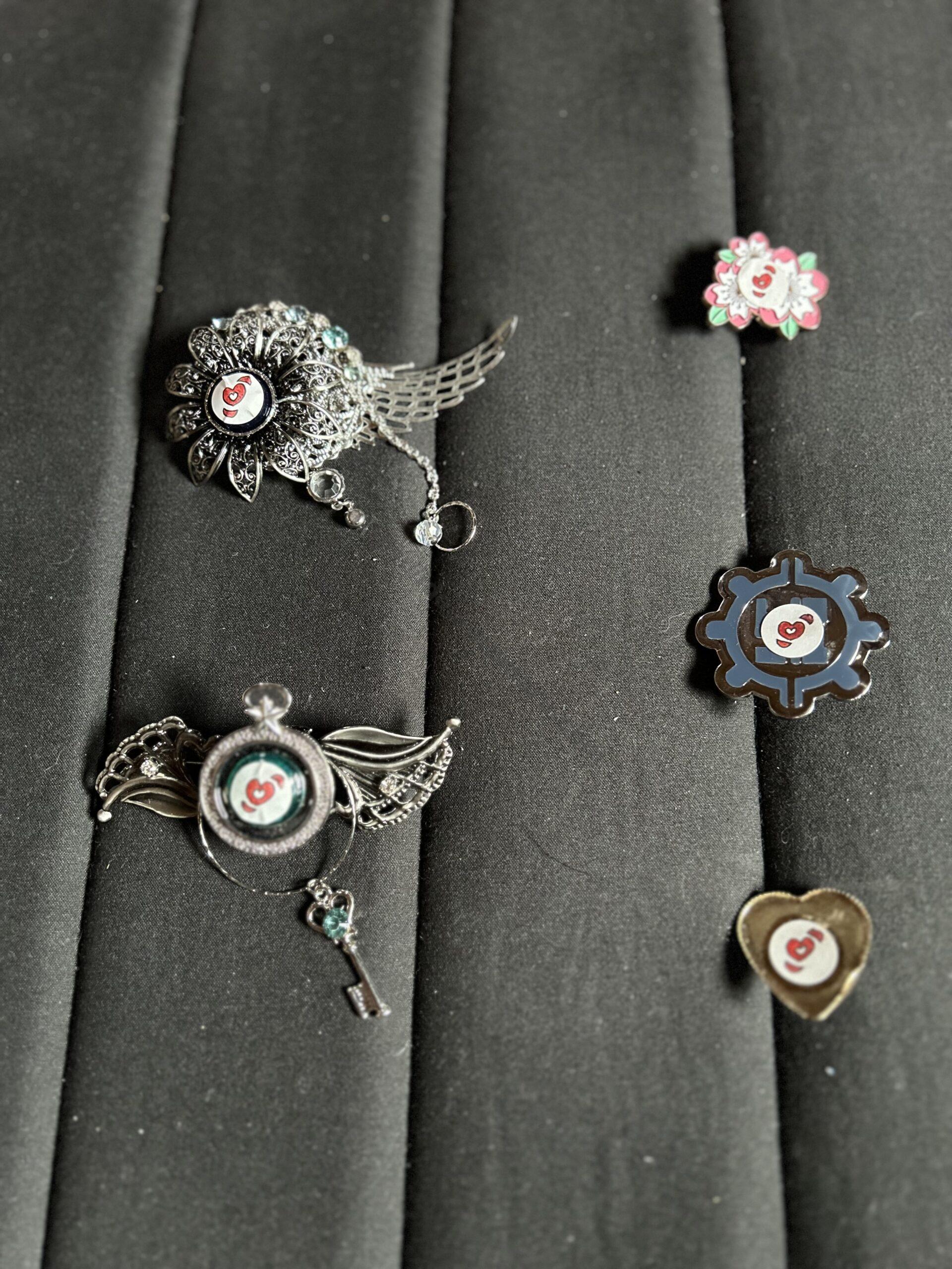 婚活ブローチ アイデアID: 11857 ファッション・小物 投稿日:2025.10.14 婚活アピールブランド 『MERIA(仮)』 のロゴマーク入りの婚活ブローチです。画像は説明と試作品です。 小田亮