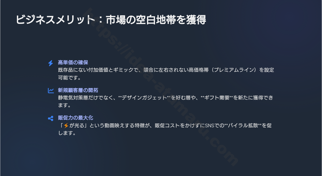 バチッ!を光で解消!安心を視覚化するスマート筆記具【雷電・除電ボールペン アークライト】 アイデアID: 12549 文房具 投稿日:2025.11.20 静電気対策と筆記具をこれ一本で両立できます! このボールペンの特徴は雷型⚡️の透明窓が放電された時に一瞬青白く光ることそ... 千万城